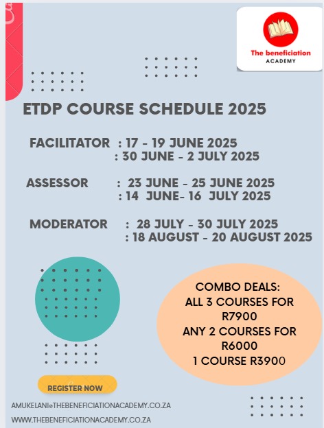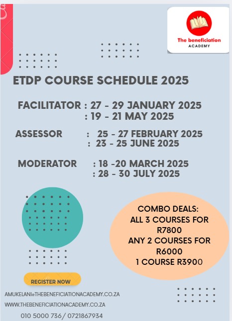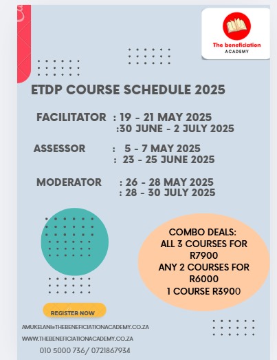 The Beneficiation academy is an accredited institution accredited with various setas including ETDPseta, MQAseta and MICT seta.
